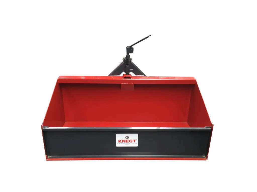 Die Knegt Transport-Box / Heck-Container wird an der 3-Punkt Heckhydraulik montiert, verfügt über eine Keckklappe und ist mechanisch kippbar.